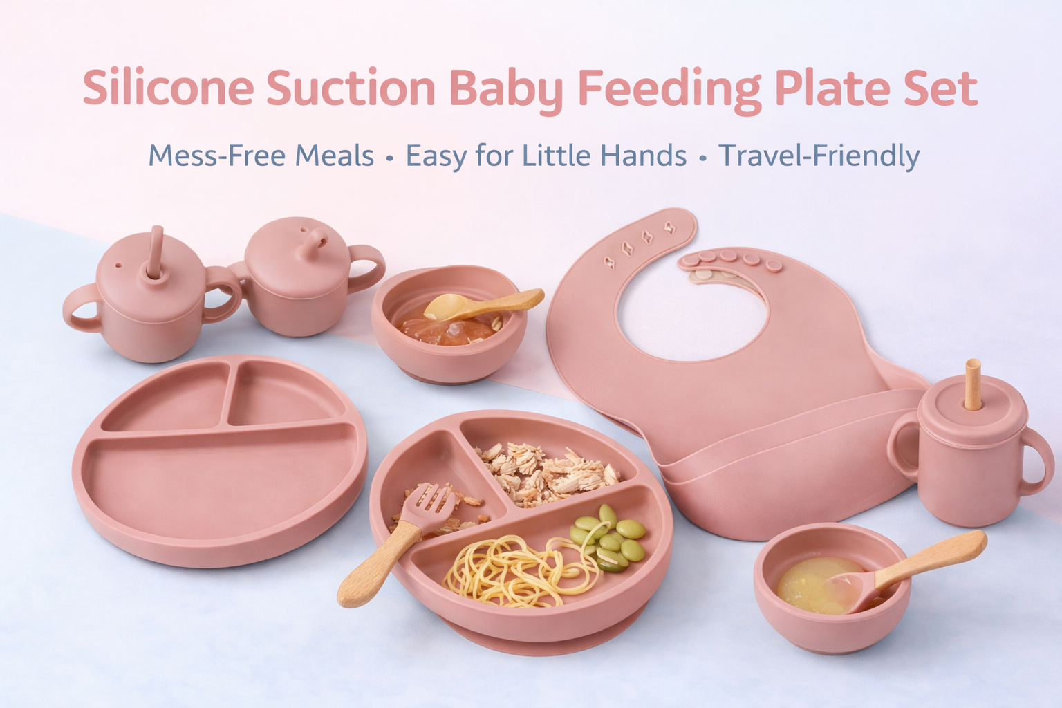Designed for early self-feeding, the divided plate keeps foods apart, and the ergonomically shaped spoon made from soft silicone ensures comfort and safety for developing hands and gums.